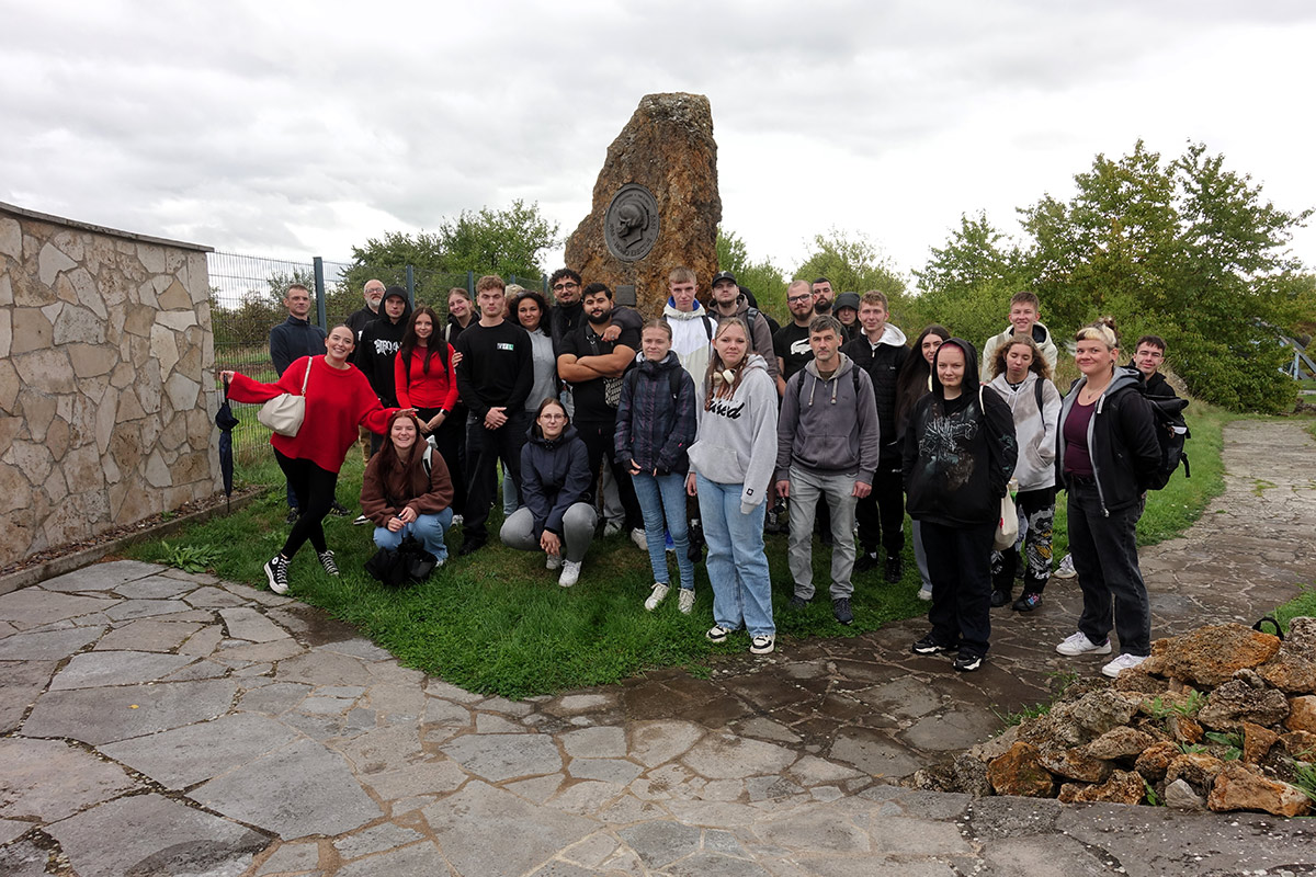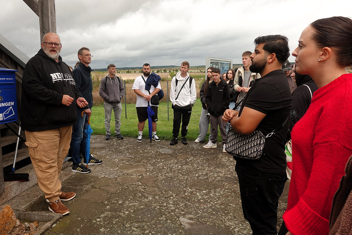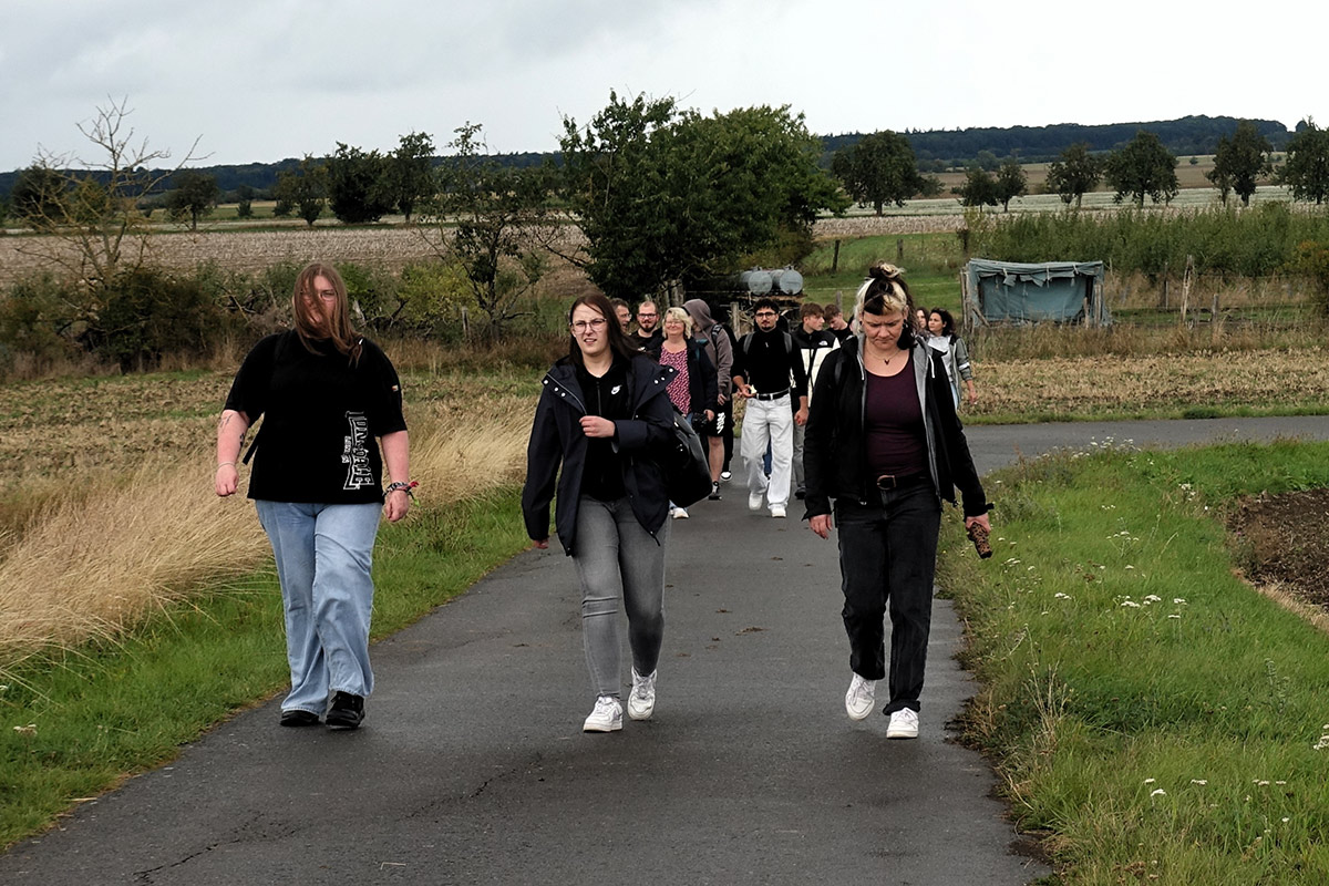 Am Montag, den 15. September 2025, begab sich der gesamte Fachbereich Farbtechnik auf eine spannende Exkursion. Ausgangspunkt war Kindelbrück. Über idyllische Feldwege, gesäumt von zahlreichen Obstbäumen, wanderten die Auszubildenden, Ausbilder und Sozialpädagogen gemeinsam zur Ausgrabungsstätte Steinrinne.