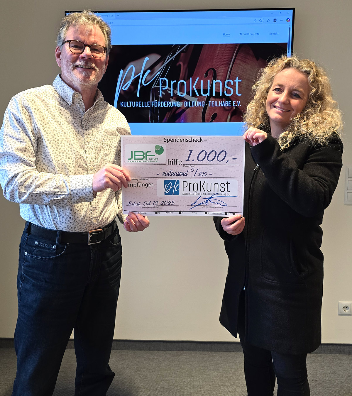 Wir sind stolz, sagen zu können, dass wir den Erlös unseres Weihnachtsmarktes – ganz im Sinne unserer Tradition – an das Kinder- und Jugendhospiz in Tambach-Dietharz sowie an ProKunst e. V. spenden durften.