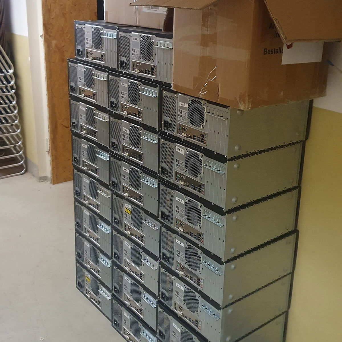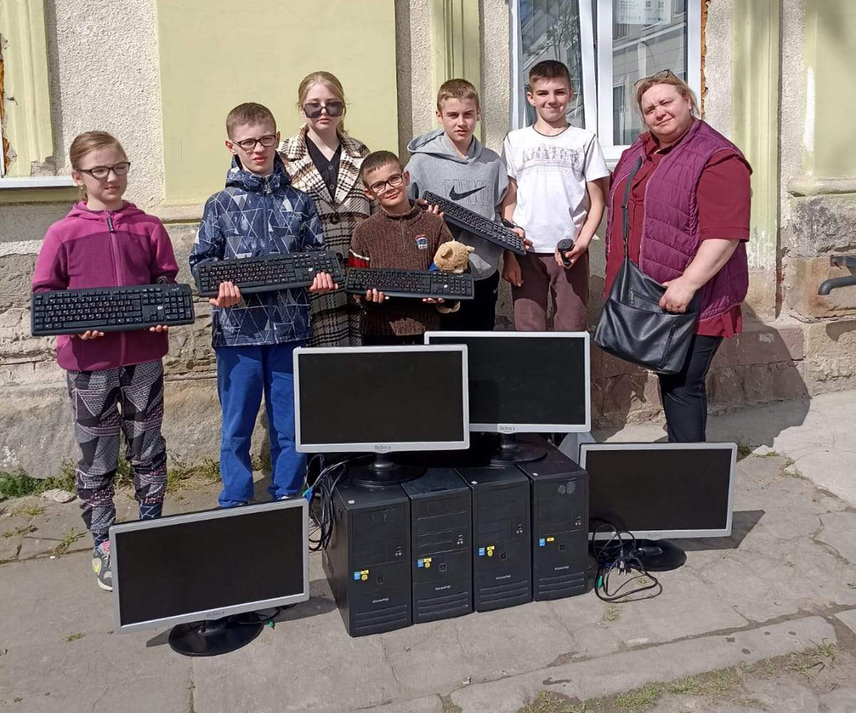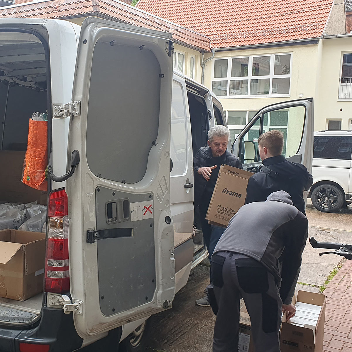 Aber von vorn. Anfang April erreichte uns über den Rotary Club Erfurt-Krämerbrücke eine Unterstützungsanfrage von Frau Mamiyeva von den ukrainischen Landsleuten bezüglich der Unterstützung von geflüchteten Familien in der Ukraine. Unter Anderem wurde auch der Bedarf an IT-Technik dargestellt, damit eine ordentliche Beschulung der Kinder weiterhin stattfinden kann. Sehr gern signalisierten wir unsere Unterstützung, da wir durch den Austausch der gesamten PC-Technik im vorigen Jahr genügend Geräte eingelagert hatten.