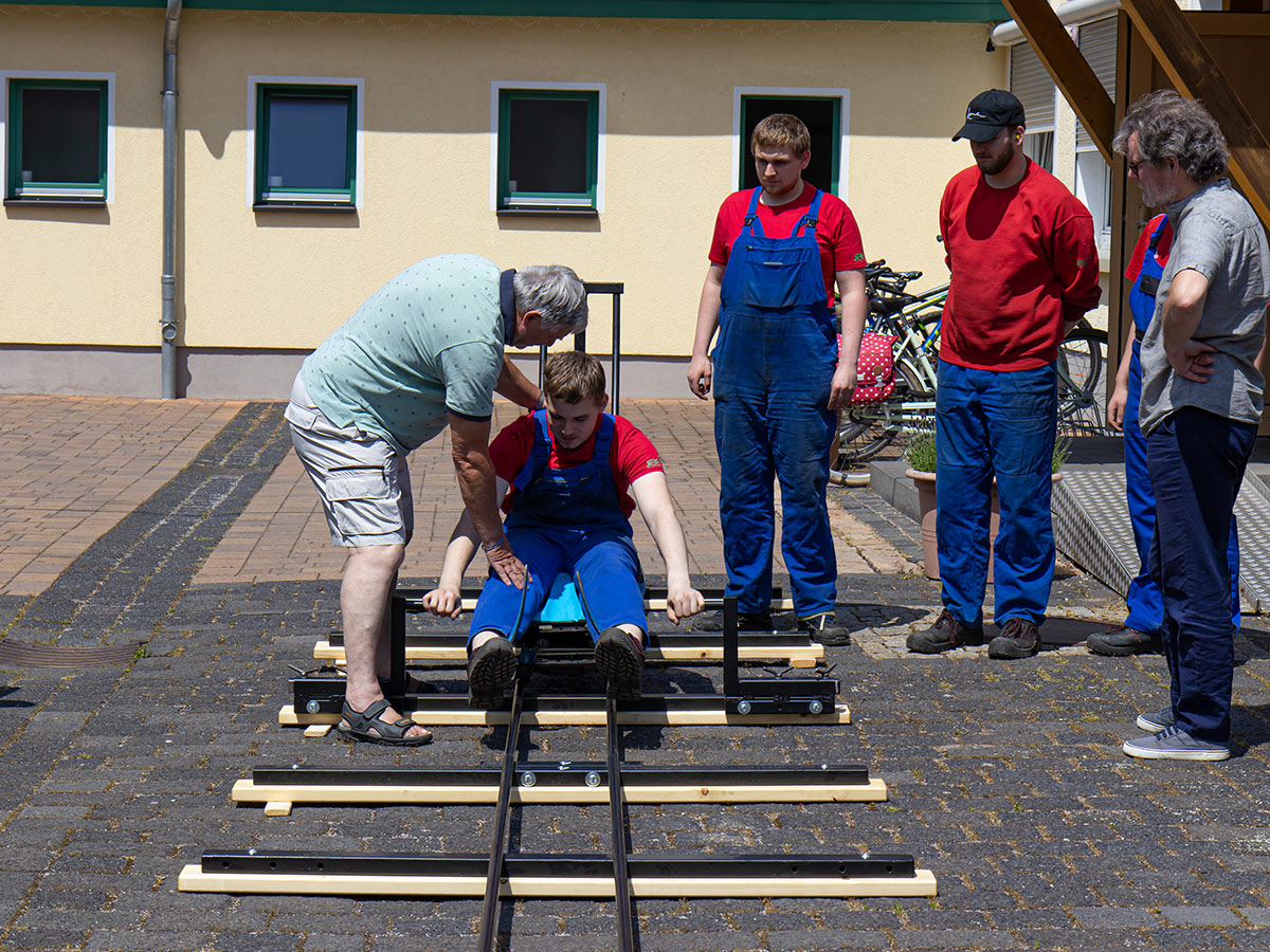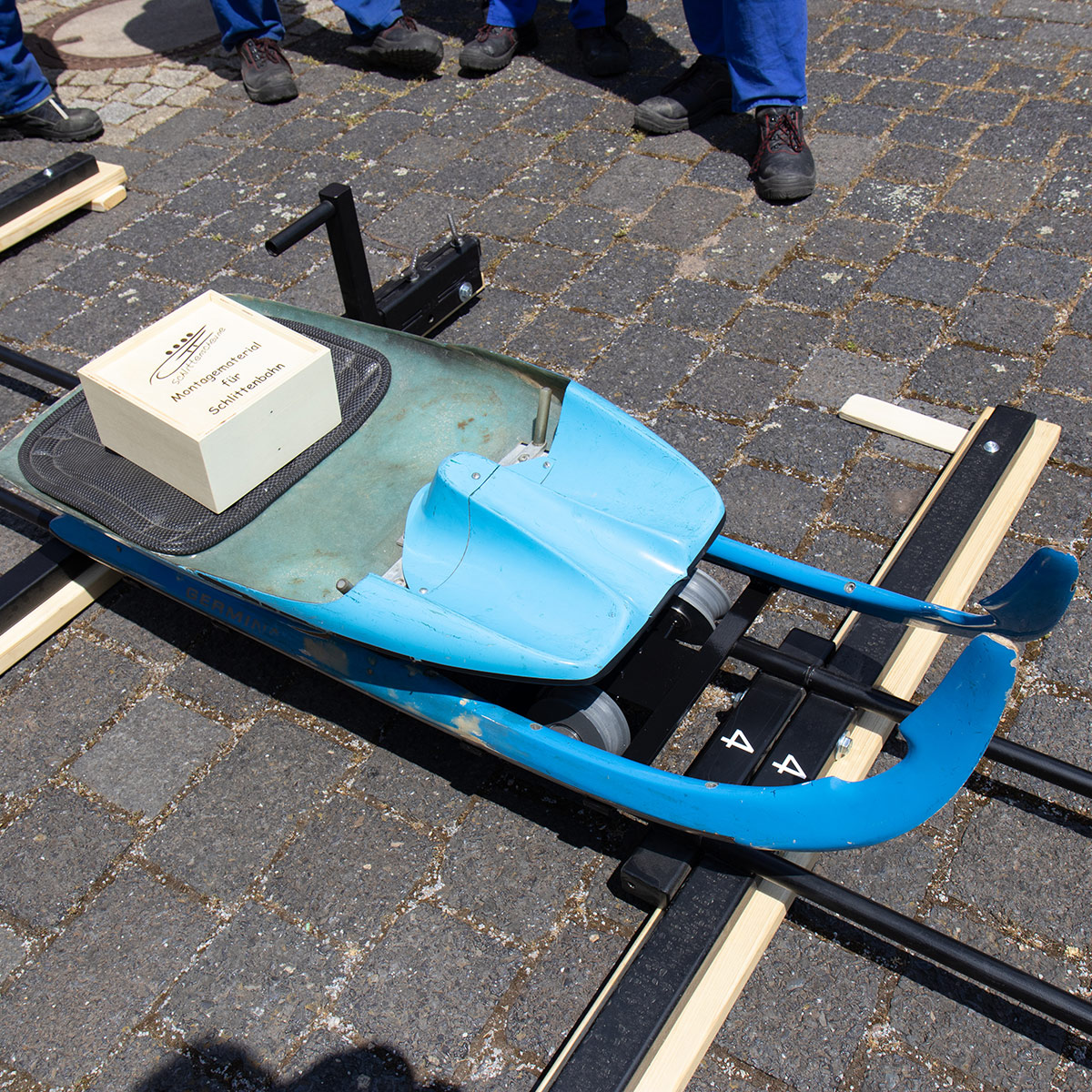 Durch die Integration in den Ausbildungsbetrieb dauerte die tatsächliche Umsetzung fast ein Jahr. Aber die Kooperation zwischen den Fachbereichen Metall, Holz und Farbe hat zu einem vorzeigbaren Ergebnis geführt, welches wir am 13. Juni 2023 stolz den Vorständen des Traditionsvereins Herrn Roland Hollaschke und Herrn Norbert Wagner präsentierten. Natürlich wurde bei der Übergabe auch zünftig "angerodelt"!