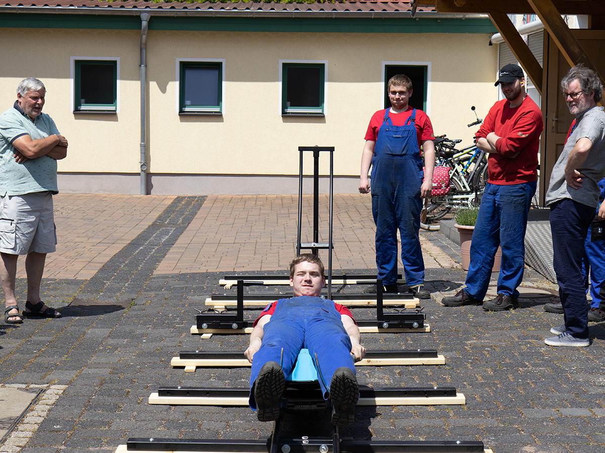 Vor vielen Jahren hatte die Jugendberufsförderung dem Thüringer Schlitten- und Bobsportverband eine Schlittenstartanlage bauen dürfen. Damals noch mit einem historischen Holzschlitten als Trainingsgefährt.